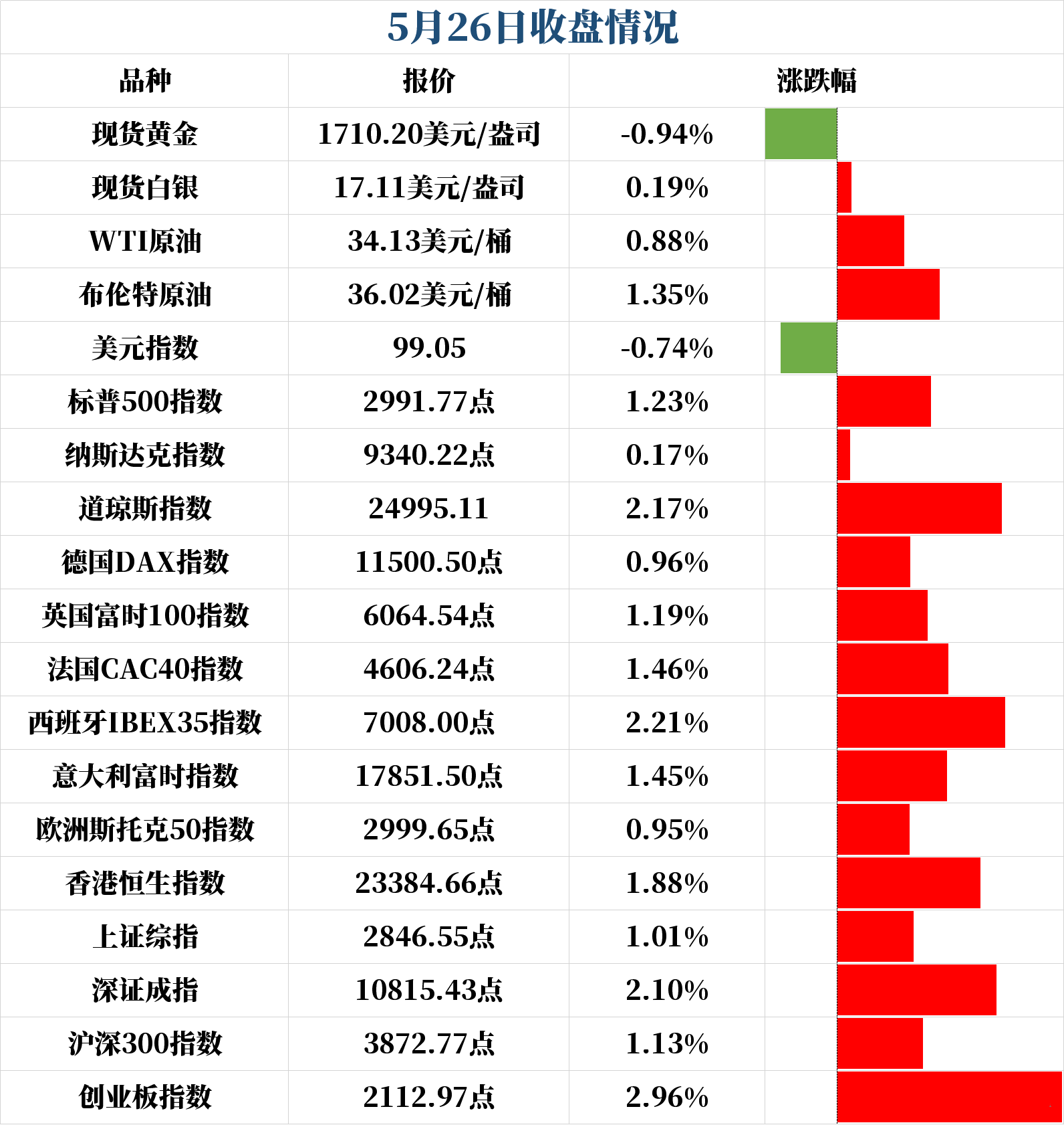 欧洲主要股指全线上涨,其中西班牙IBEX35指数涨幅居前,收涨2.21%;德国DAX指数涨0.96%,英国富时100指数涨1.19%。