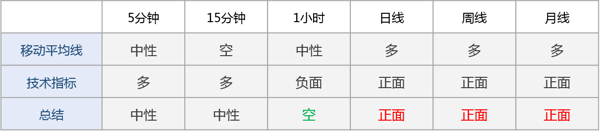 多周期技术信号显示日内市场情绪看跌:短线看跌(5分钟,15分钟,1小时),中线看涨(日线),长线看涨(周线,月线)。