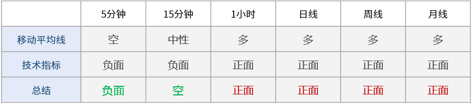 多周期技术信号显示日内市场情绪看跌:短线看跌(5分钟,15分钟,1小时),中线看涨(日线),长线看涨(周线,月线)。