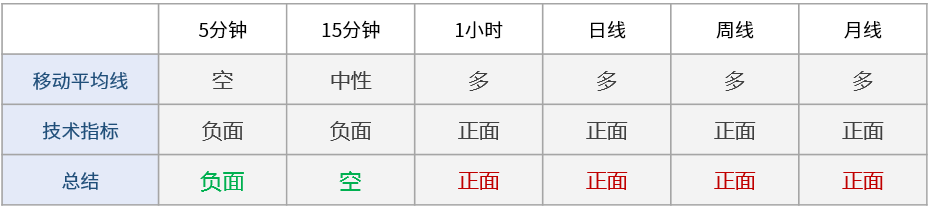 多周期技术信号显示日内市场情绪看跌:短线看跌(5分钟,15分钟,1小时),中线看涨(日线),长线看涨(周线,月线)。