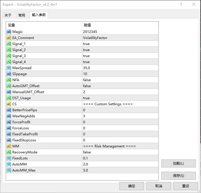 ForceLoss:当总亏损达到设定值时,EA会将订单全部平仓;如果设定为0,则EA会使用内部默认参数