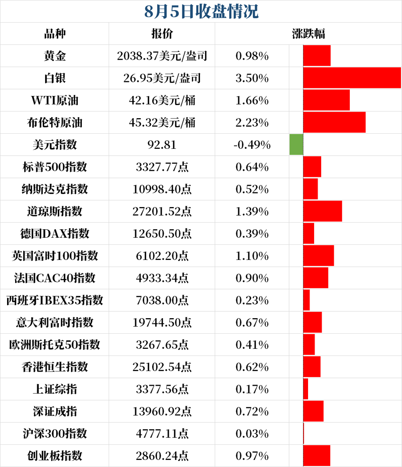 股市方面,道指开涨130点,盘中持续走高,尾盘小幅拉升;截至收盘,道指收涨1.39%,报27201点,纳指首次站上11000点,创盘中和收盘历史新高,最终收涨0.52%,报10998.40点;标普500指数涨0.64%。