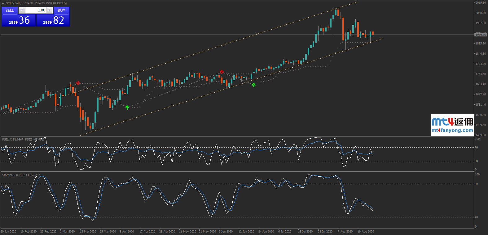 观点:日线看涨,关注三角形上轨阻力。(跌破1900-1902区域则观点失效)