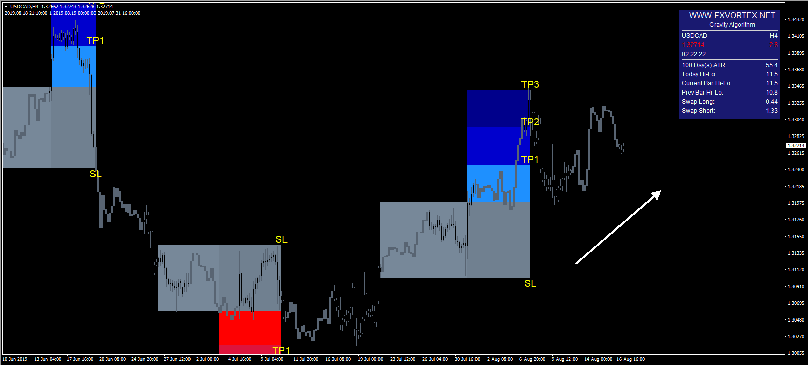FOREX VORTEX外汇交易系统将为交易者显示清晰的信号,并为交易者提供准确的止盈和止损水平!当MT4,电子邮件和实时通知出现新信号时,FOREX VORTEX外汇交易系统还将发送警报,以方便交易者交易。