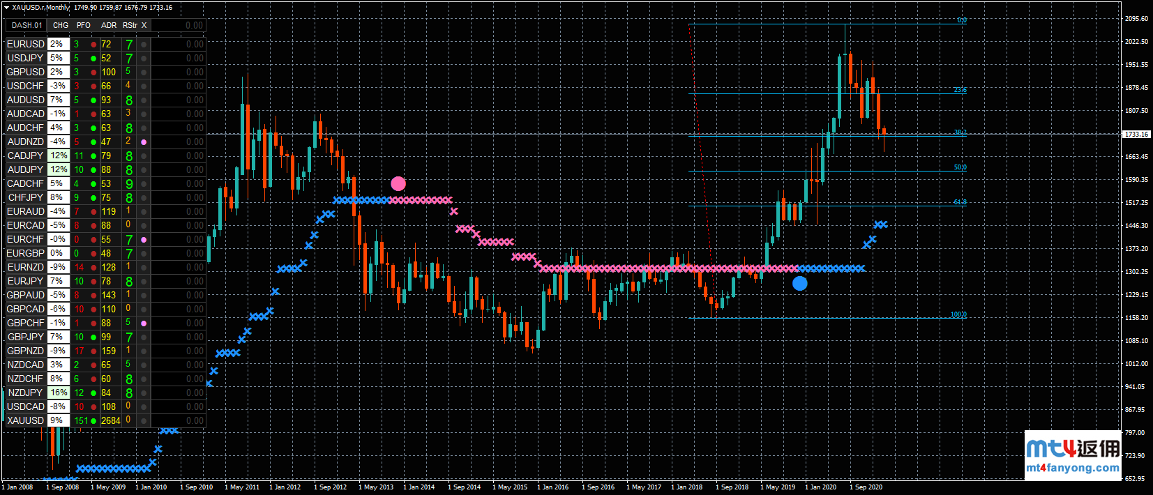 但是,金价8月高点仍未被触及前,这波回调仍在继续。此时,金价正持续测试2018年-2020年区间的38.2%斐波回撤水平,而该水平时趋势延续策略的重要水平。