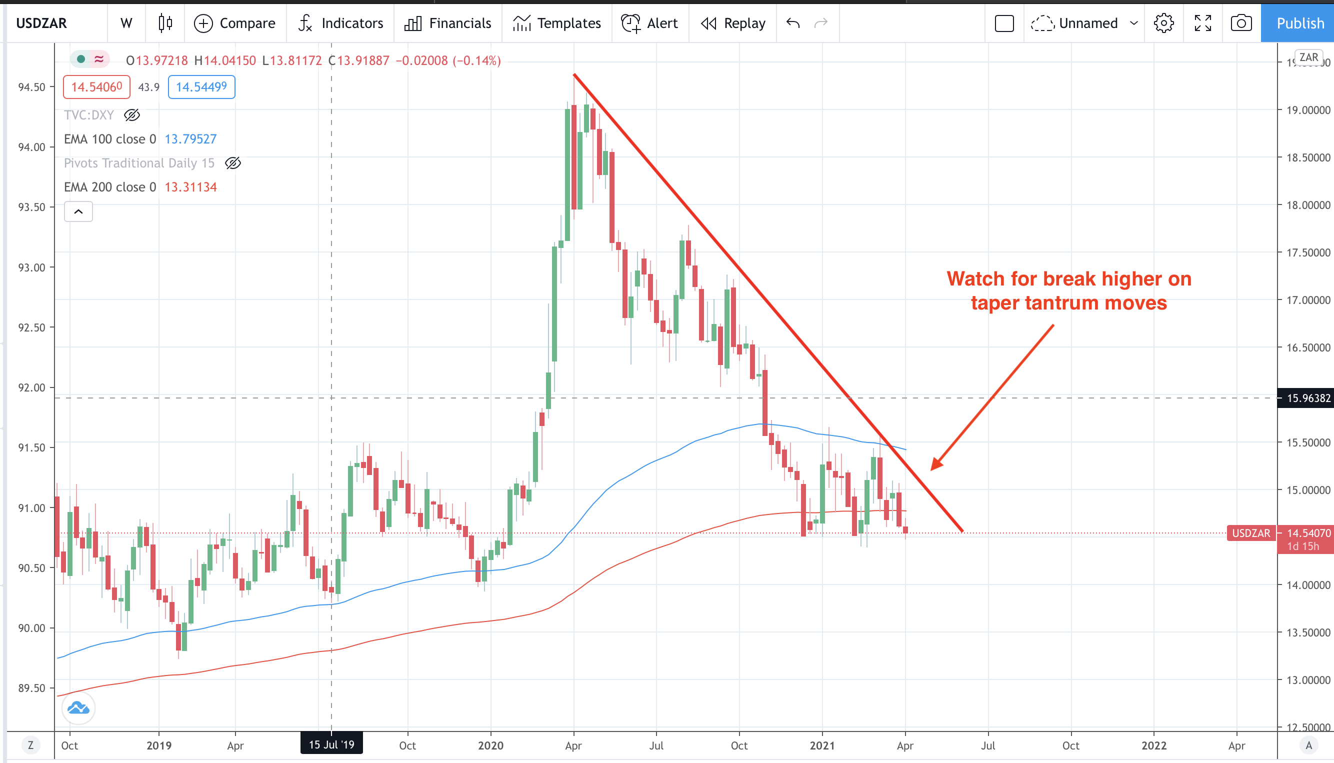 ING认为,最脆弱的是南非兰特(ZAR),因为它在2021年强劲增长。其次,人民币、新台币、韩元也会是“缩减恐慌”中的易受伤者。
