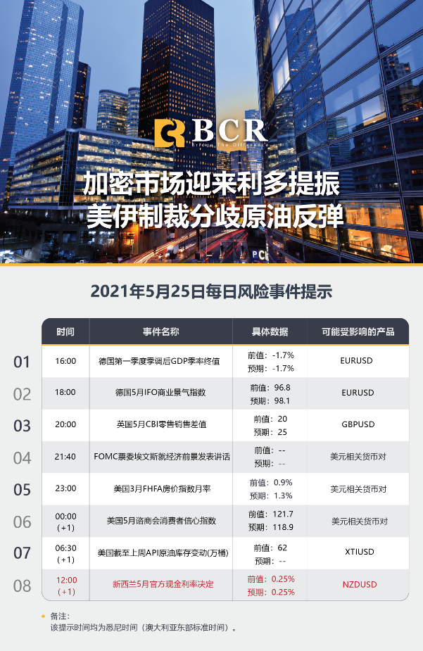 外汇商品早报:加密市场迎来利多提振,美伊制裁分歧原油反弹