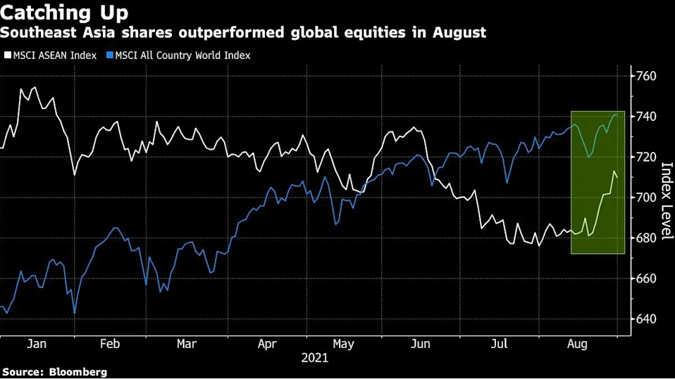 随着8月行情的落幕,很多人或许不会想到,东南亚市场在过去一个月的时间里成为了全球表现最好的股票和外汇市场之一。尽管部分国家的新增病例数依然居高不下,但不断上升的疫苗接种率和逐渐放松的社交隔离限制,帮助东南亚多国的股市和汇市逐渐走出了德尔塔疫情带来的阴霾,而不少业内机构也对这一地区金融市场的前景持乐观态度。