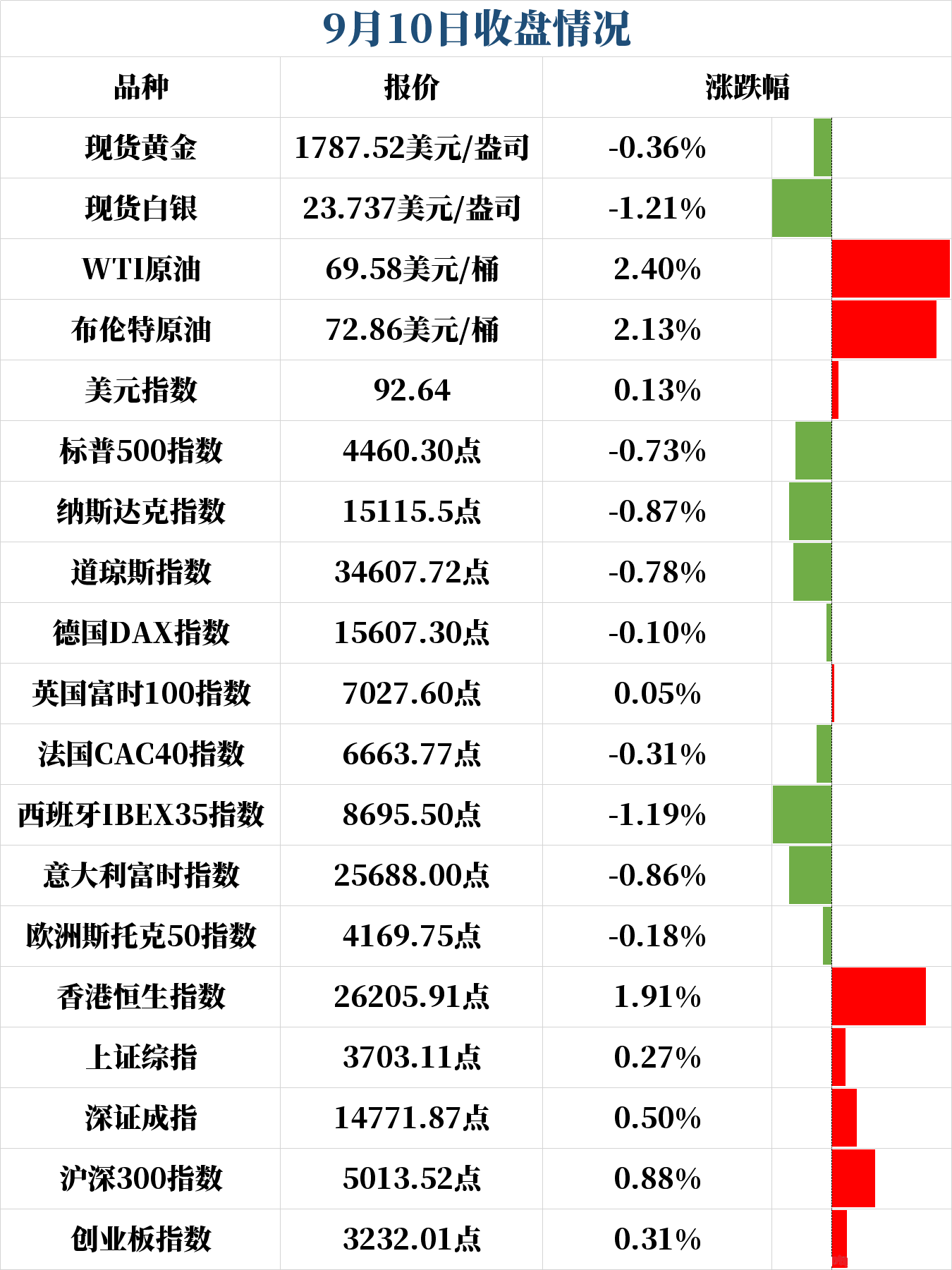 国际油价方面,WTI原油上破69美元/桶,布伦特原油再度测试73关口。截至收盘,WTI原油收涨2.4%,报69.58美元/桶;布伦特原油收涨2.13%,报72.86美元/桶。