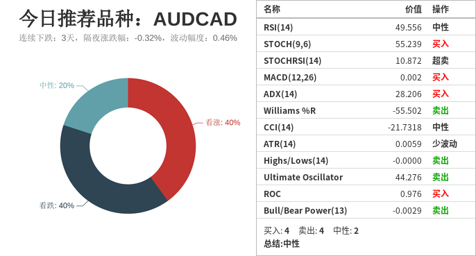 澳元加元(下跌:3天,隔夜涨跌幅:-0.32%,波动幅度:0.46%)。