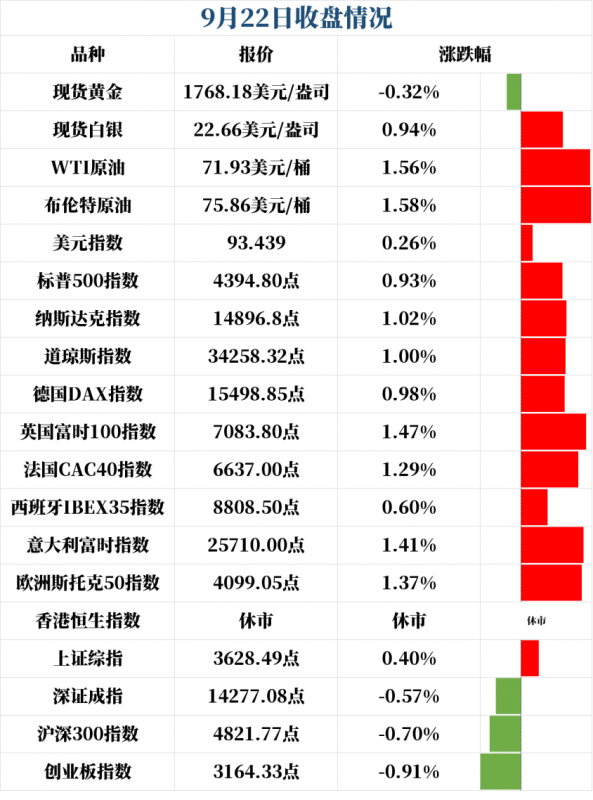 美联储缩债最早11月宣布,点阵图显示加息预期提前,黄金上下扫荡,失守1770关口;美国EIA原油库存创2018年10月来新低,伊拉克油长发出一个警告......隔夜今晨,全球都发生了哪些大事?