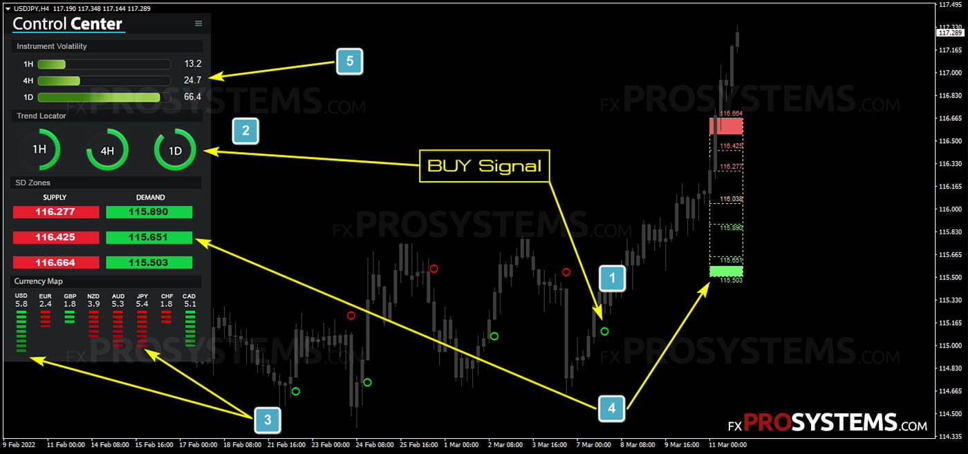 - 当买入信号出现并且与所有3个更高的时间周期一致时,这是一个有效的买入信号。