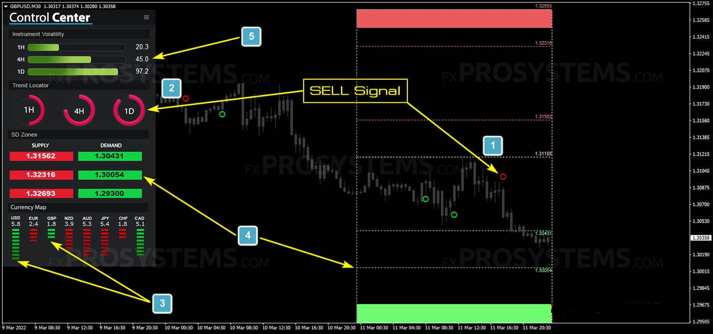 货币对波动率提供有关特定时间周期货币对范围的额外信息。如果货币对动态移动,如果货币对在范围内,绿线将更长或更短。