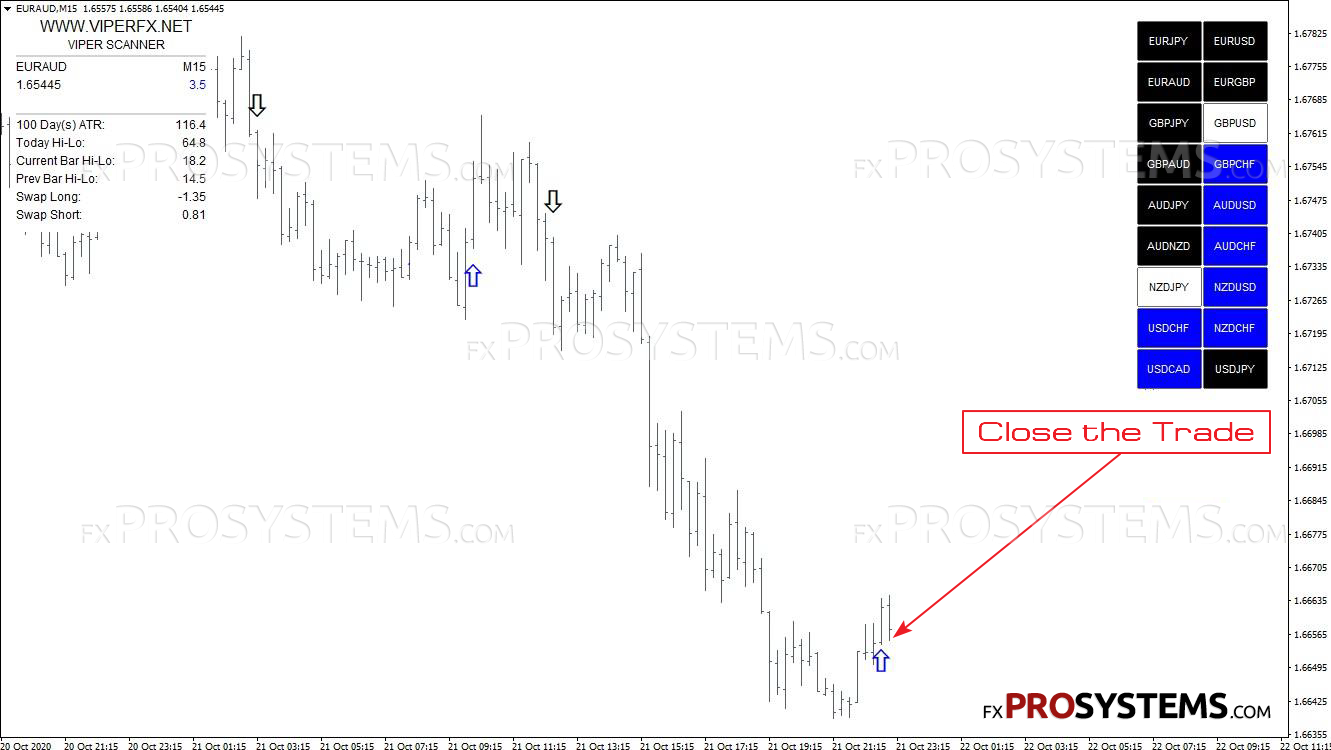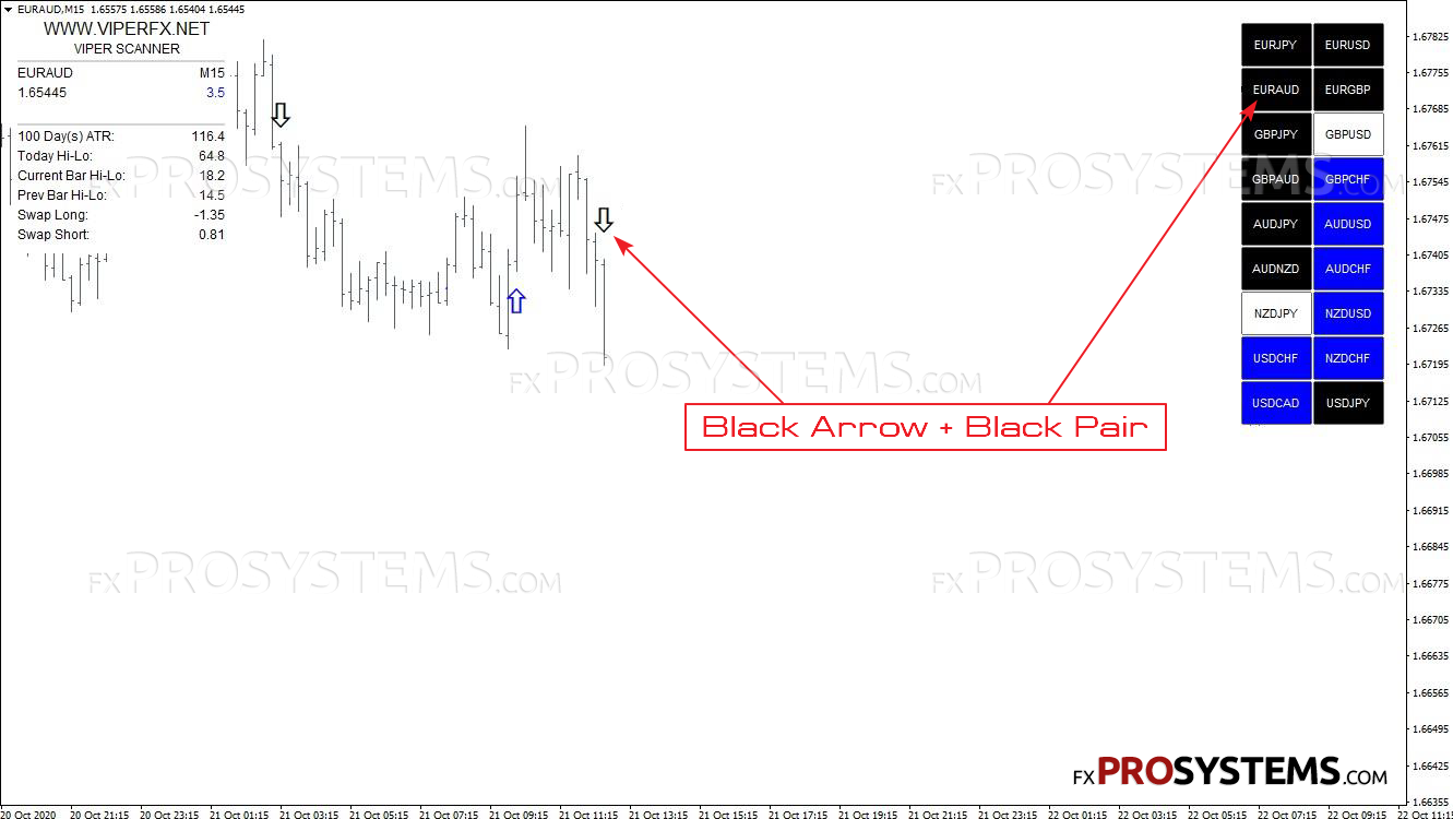 让我们看看卖出信号是如何工作的。切换到EURAUD,它在扫描器上是黑色的。