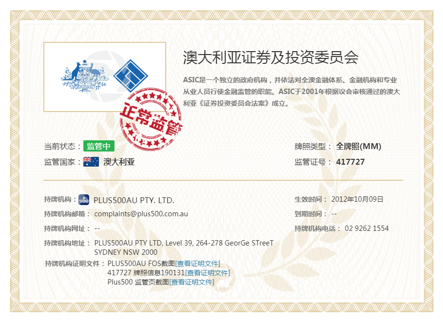 - 监管机构:ASIC